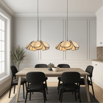 Drewniana lampa wisząca w kształcie kwiatu z eleganckim wykończeniem