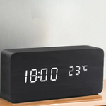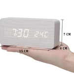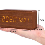 Drewniany Zegar LED Ścienny z Aktywacją Głosową i Regulacją Jasności