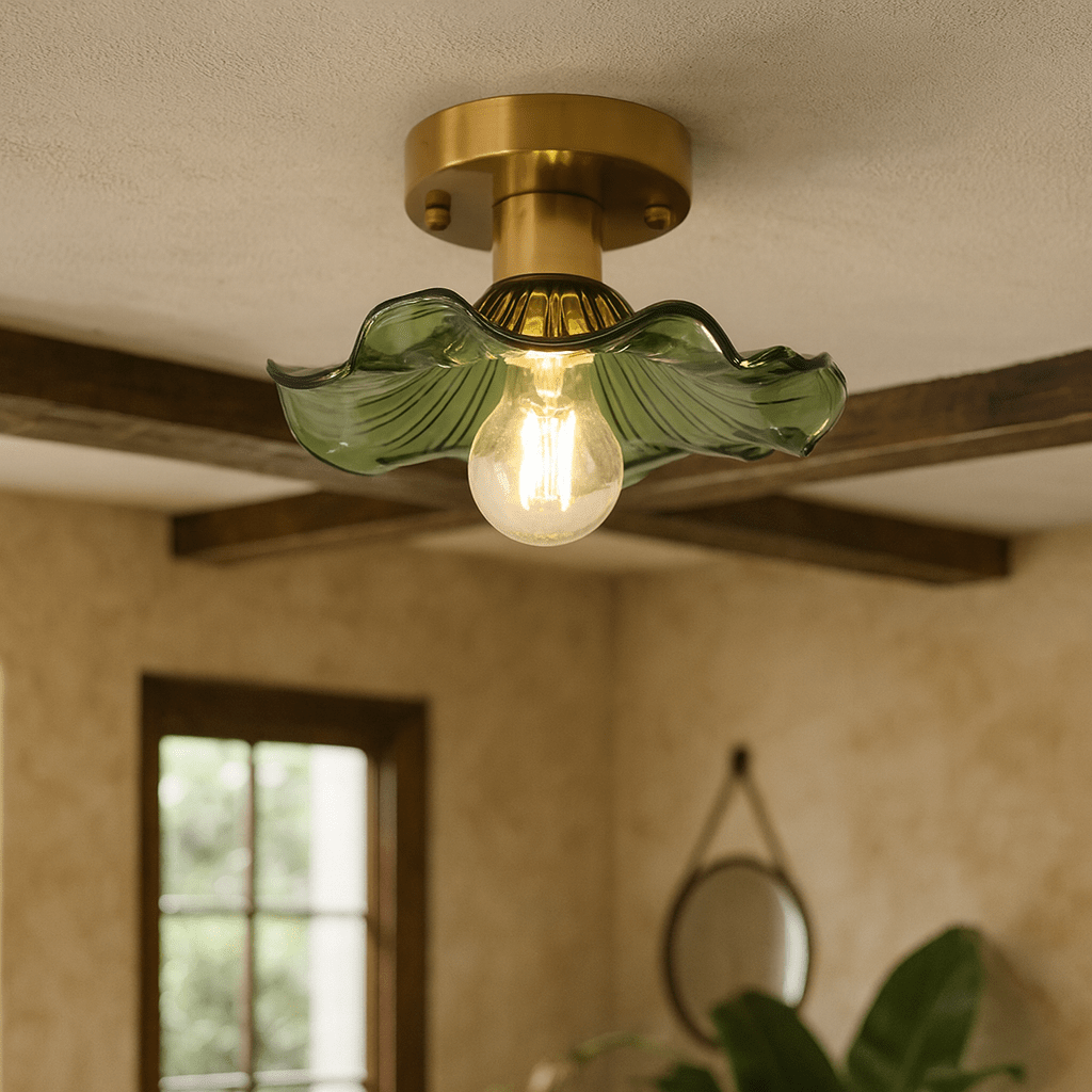 Odkryj wyjątkową lampę sufitową z zielonym kloszem w kształcie kwiatu hibiskusa, która doskonale wpasuje się w nowoczesne wnętrza. Idealna do przedpokoju, sypialni lub przestrzeni życiowej, ta lampa łączy w sobie naturalną elegancję z nowoczesnym akcentem, tworząc ciepłą i przyjazną atmosferę dzięki miękkiemu światłu emitowanemu przez żarówkę LED.