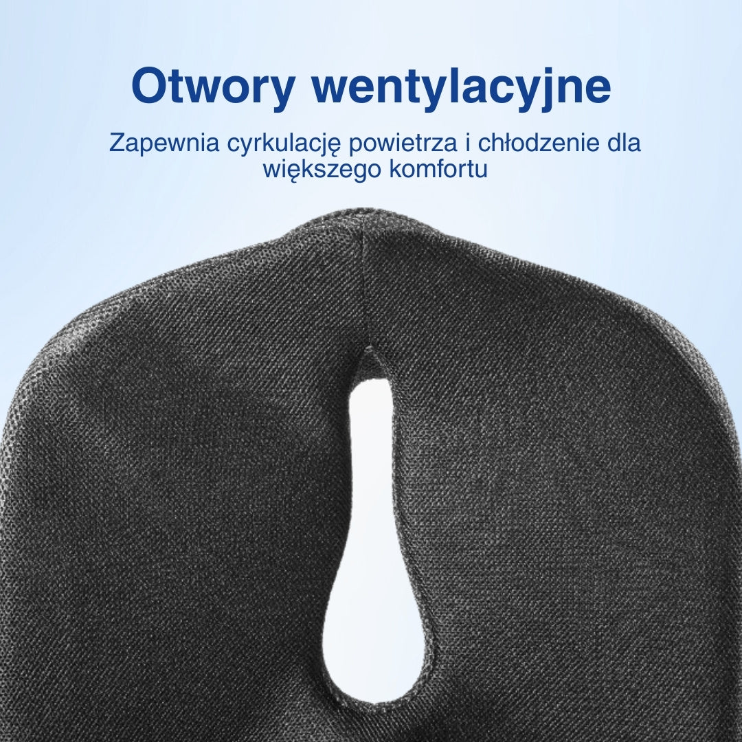 Doskonałe dopasowanie do Twojego ciała otula kości siedzeniowe i dolną część pleców, redukując nacisk i wspierając zdrową postawę.