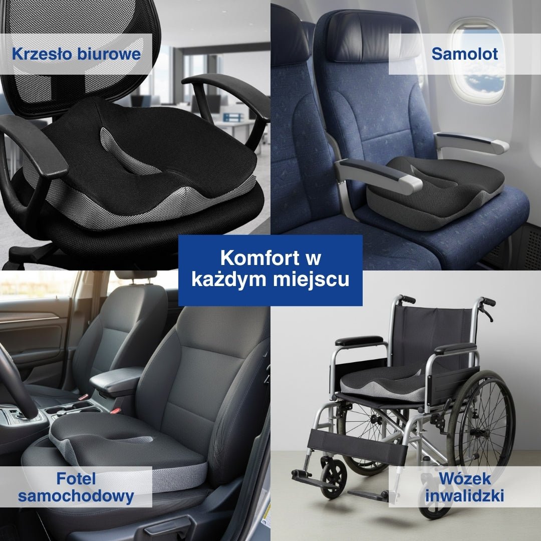 Tak — poduszka jest uniwersalna i można ją stosować na krzesłach biurowych, fotelach samochodowych, wózkach inwalidzkich i nie tylko.