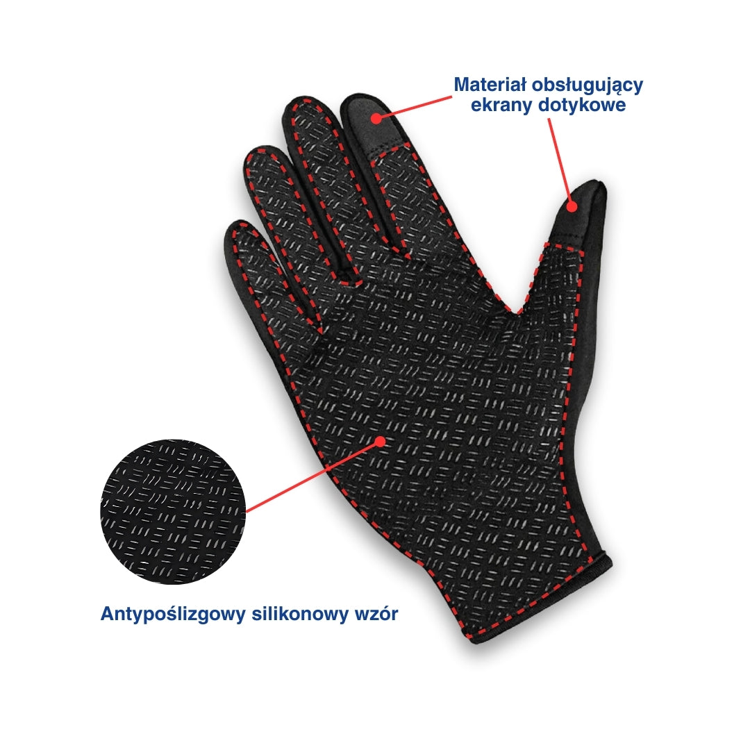 Te podgrzewane rękawice z funkcją ekranu dotykowego łączą izolację termiczną, miękką polarową podszewkę oraz antypoślizgowy chwyt, dzięki czemu możesz skupić się na drodze lub stoku, a nie na marznących palcach.